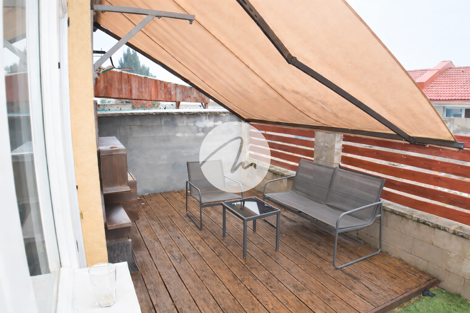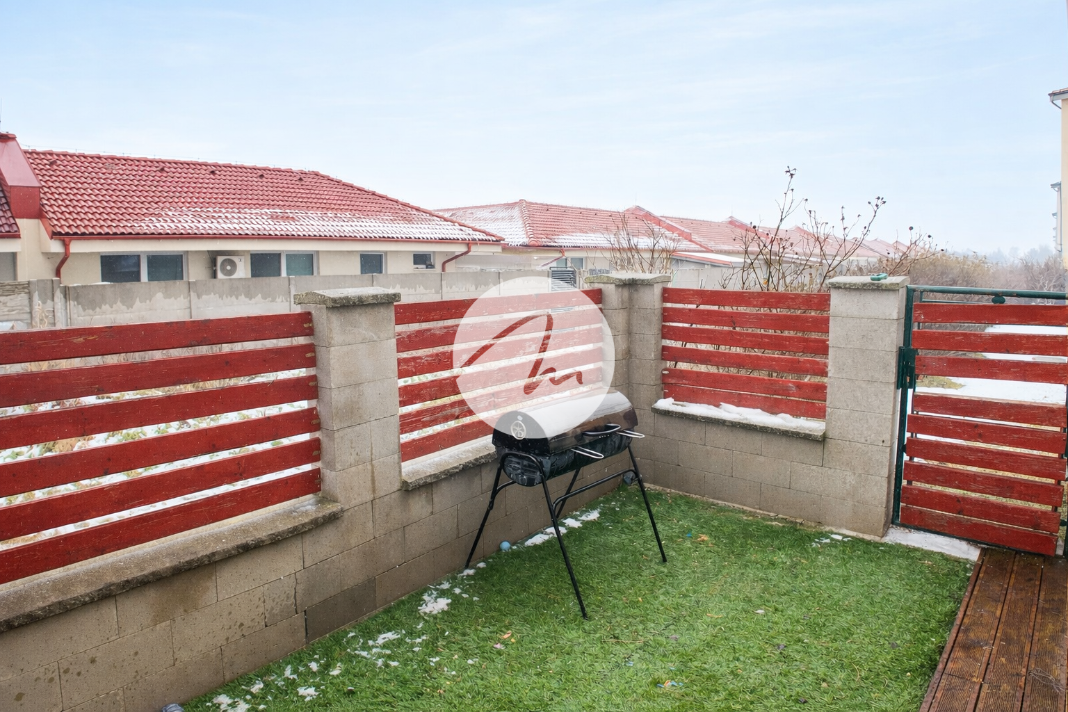 Veľkou výhodou tejto nehnuteľnosti je súkromná predzáhradka s drevenou terasou a markízou, ideálna na relax, grilovanie či rannú kávu. Praktický bočný vstup umožňuje pohodlné prenášanie bicyklov alebo záhradného vybavenia.